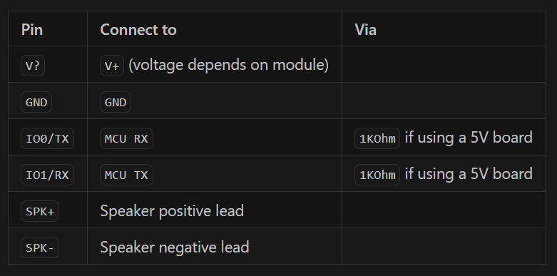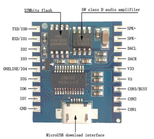 (b) 단점 : 플래시롬의 용량이 다소 아쉽다. 트리거 신호 이후 mp3파일가 시작되는 delay가 생각보다 크다(느낌상 0.3초 정도) 이 단점들 때문에 내가 진행하는 프로젝트에서는 사용이 불가했다.